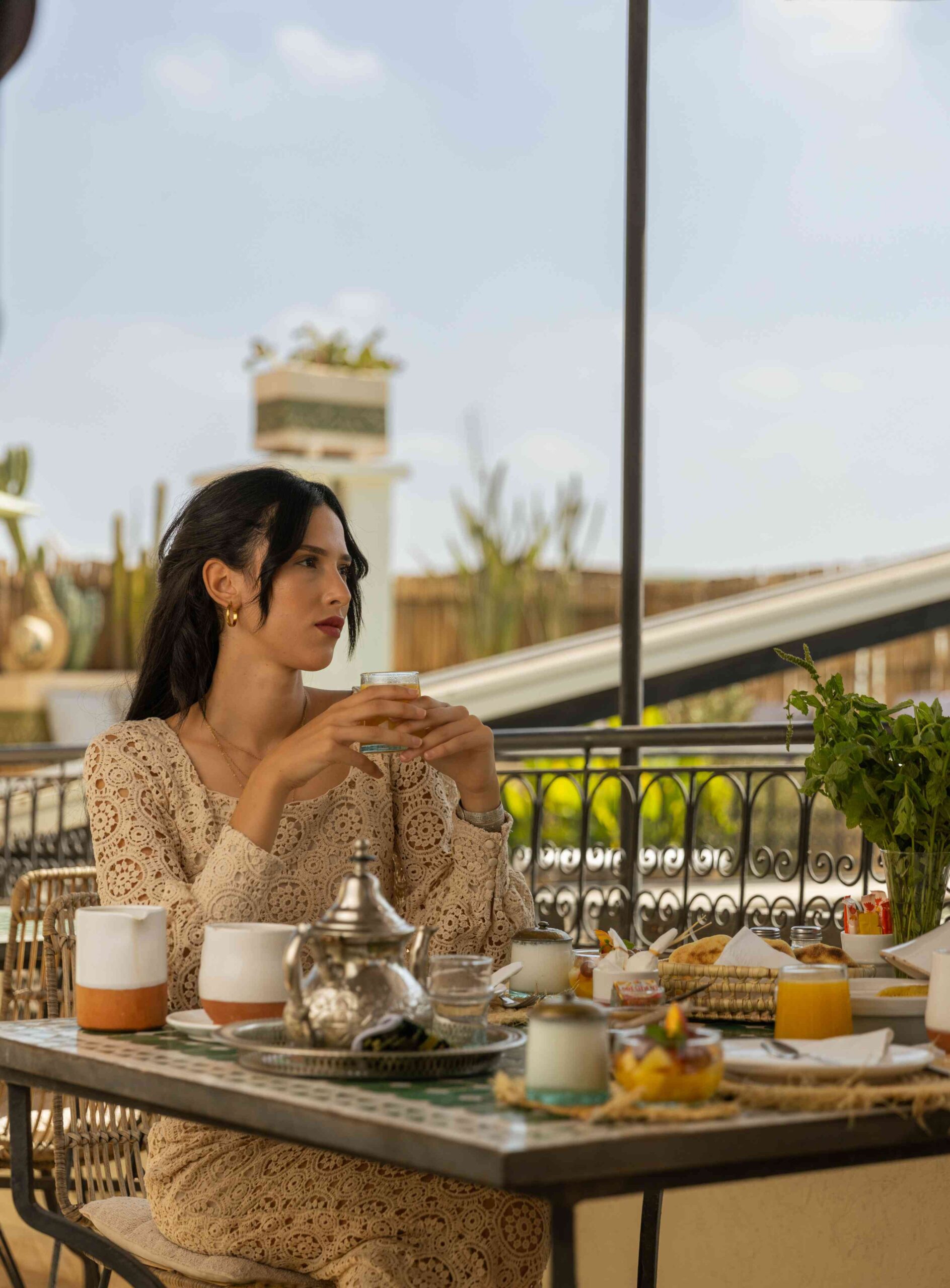 Fleur d’Oranger Chambre Triple Elle comprend un grand lit double (160×190) ou 2 lits simples (90×190)Et un lit simple (90×190)Douche traditionnelle en tadelakt.Climatisation réversibleSitué au 1er étage et ouvrant sur le patio. Equipements Sèche-cheveux Coton Démaquillant Shampoing / Gel Douche Peignoir Serviettes de Toilette Coffre-fort Réserver